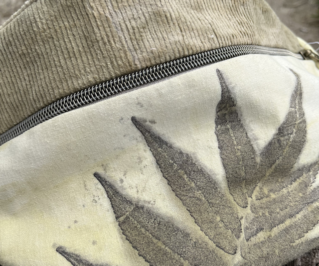 Sac banane réalisé à partir de tissus recyclés et teints naturellement à la main. Chaque sac est pensé comme une œuvre d’art et possède son numéro de série.