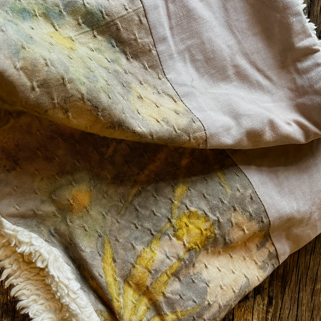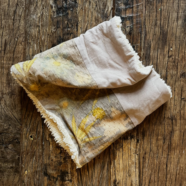 Tour de cou réalisé à partir de tissus recyclés ou tissus en coton biologique (velour et fourrure) Impressions et teintures naturelles réalisées à la main.